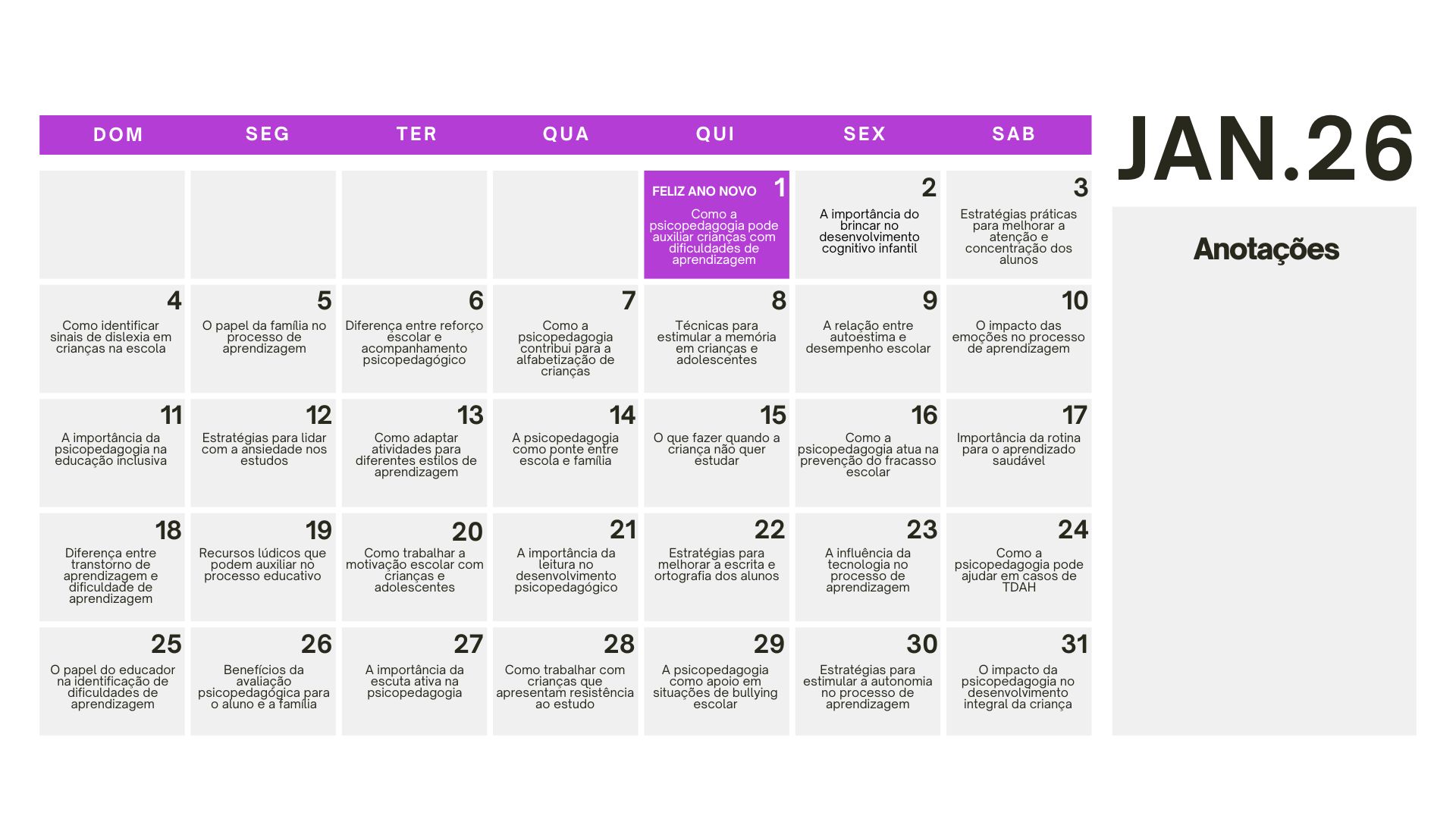 packs do Combo Educação já acompanham um calendário exclusivo com ideias de conteúdo para todos os dias de 2026 — totalmente alinhado com o universo de Educação pensado para facilitar sua rotina de postagens.