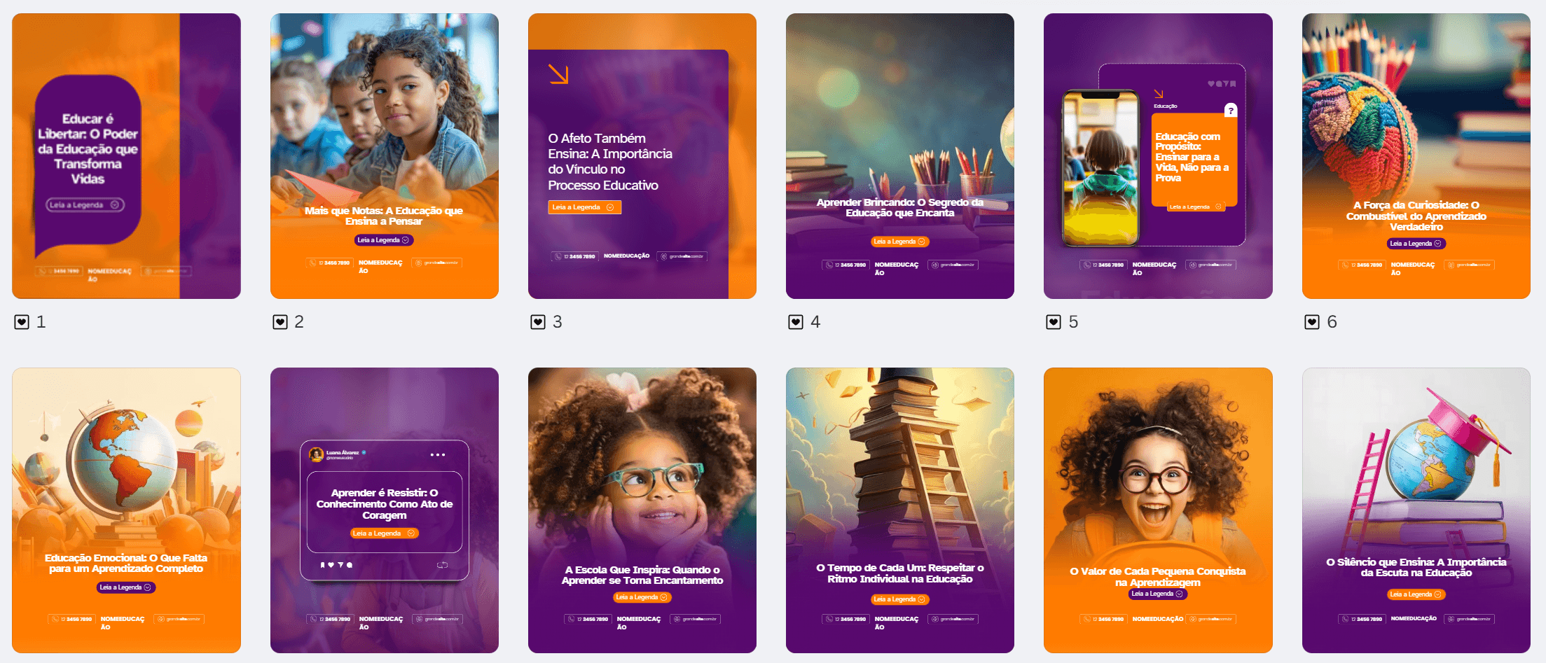 Esqueça os templates genéricos. O Combo Educação entrega artes criadas especialmente para área de Educação, com identidade visual pensada para refletir sua Autoridade e Profissionalismo.