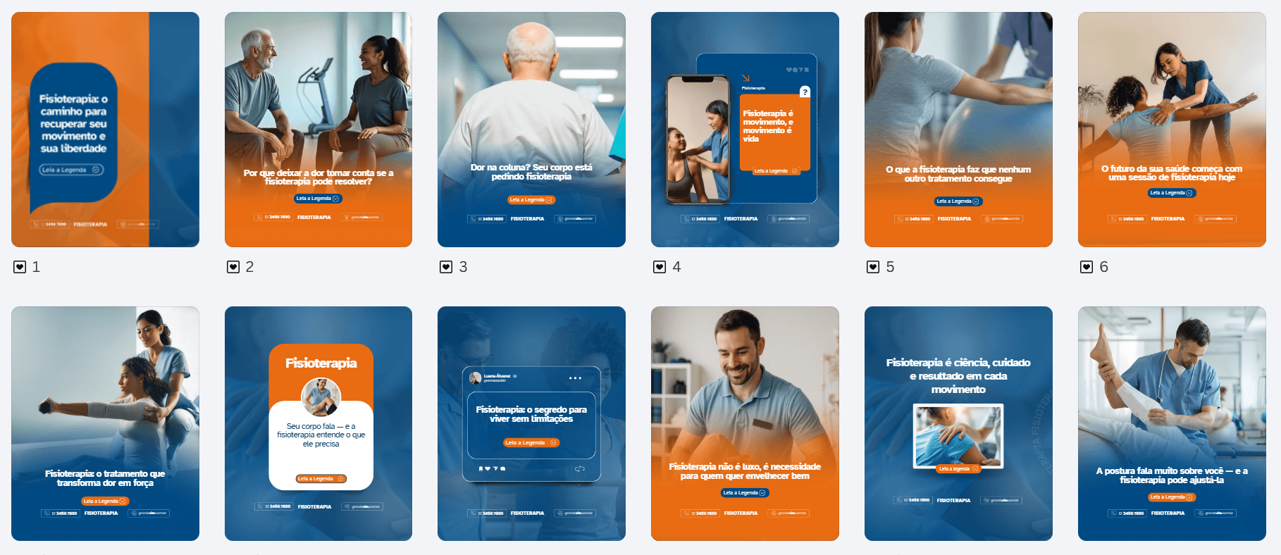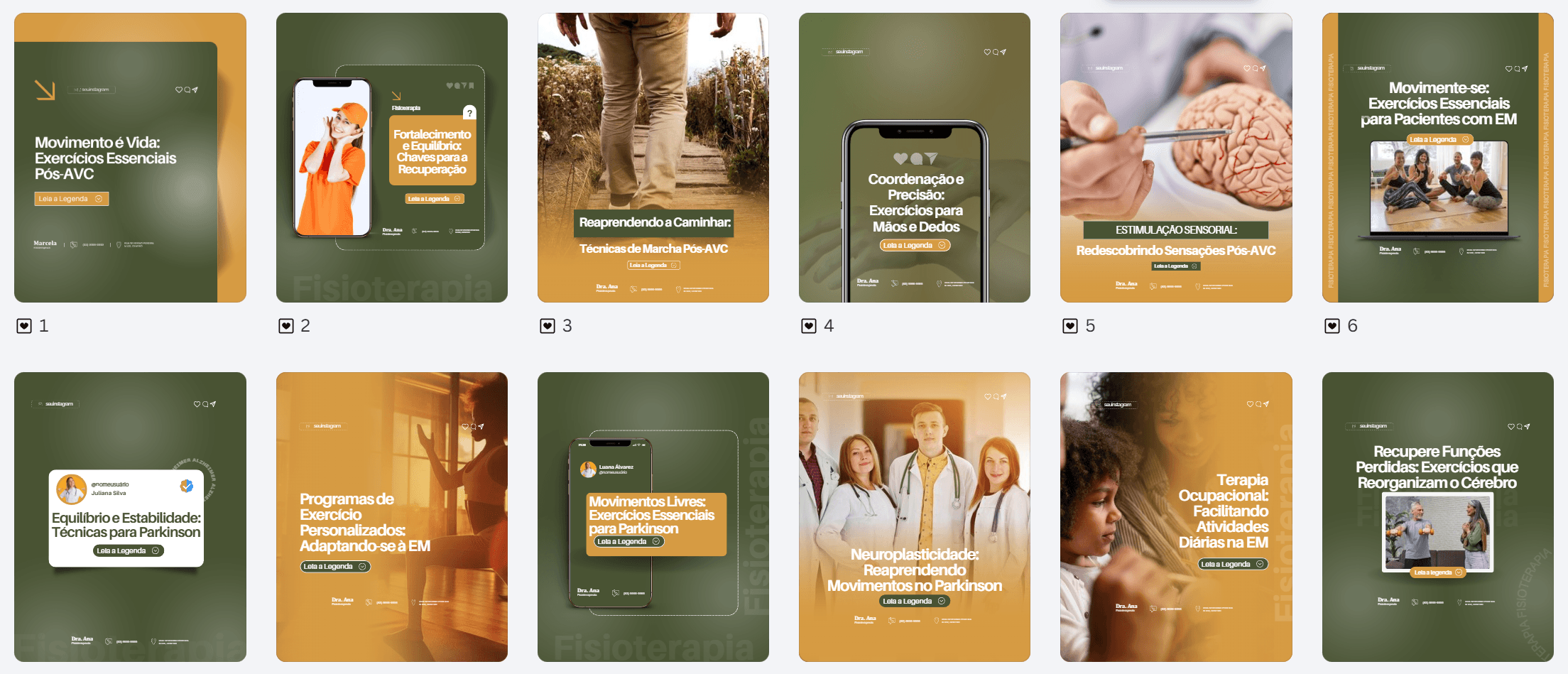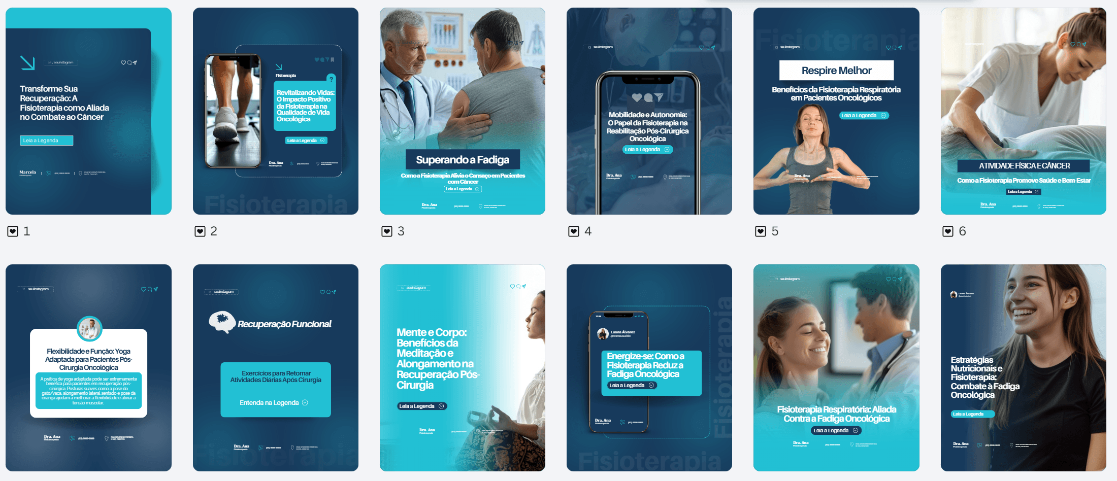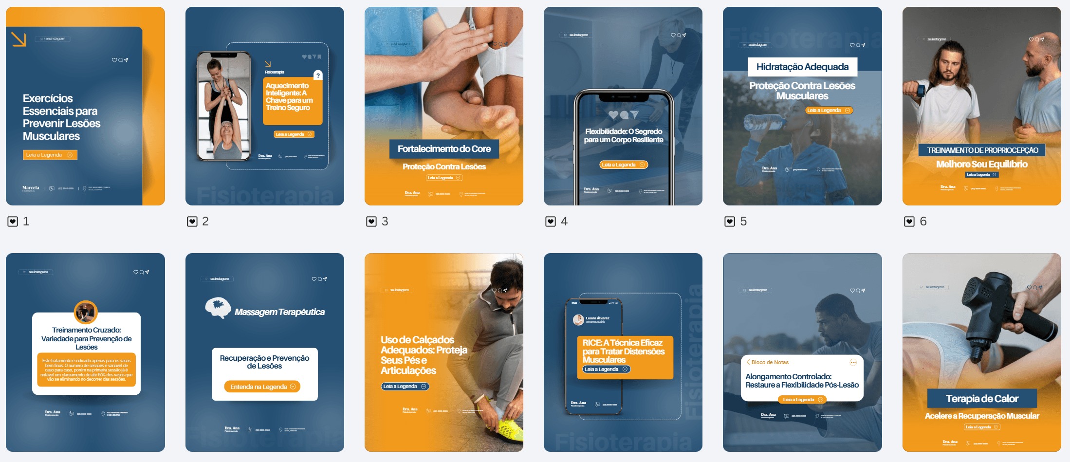 Com milhares de posts prontos para Fisioterapeutas, você garante presença constante no Instagram — com conteúdos sobre Fisioterapia que geram valor, engajam e mantêm seu perfil ativo.