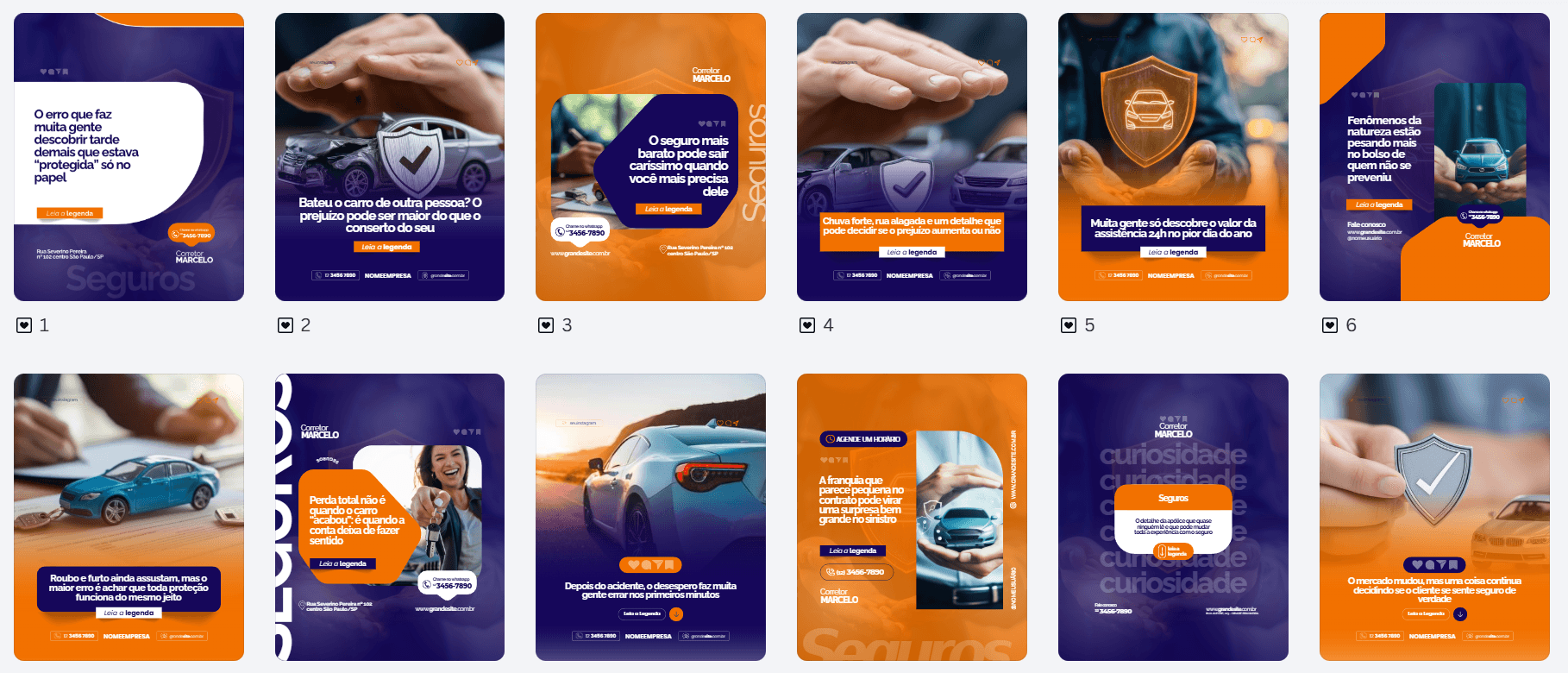 Modelos ideais para Corretores de Seguros que querem se posicionar com inteligência, autoridade e poucos textos, mas com muito impacto.