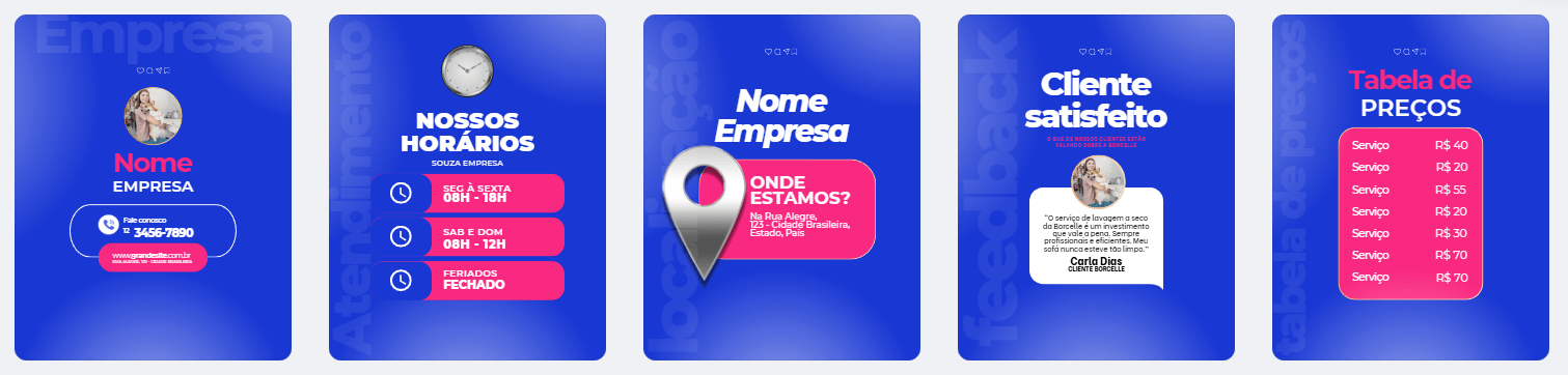 Mantenha seu perfil sempre atualizado com posts essenciais, prontos para serem usados. Ideal para comunicar informações importantes da sua empresa para seus clientes
